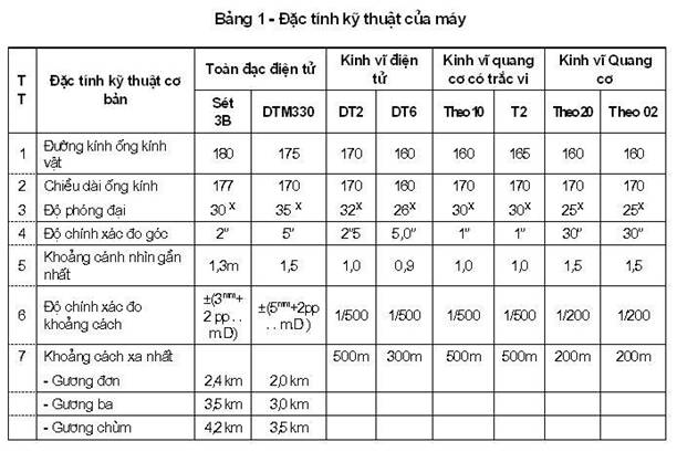 Hiện nay ở nước ta và trong ngành thủy lợi đã nhập khá nhiều máy toàn đạc điện tử có độ chính xác cao đến siêu chính xác (về góc mβ  3”, về cạnh ms/s  1/100.000) như: TC 720, DTM 700, DTM 520, DTM 420, SET 3B… của Thụy Sỹ, Nhật.