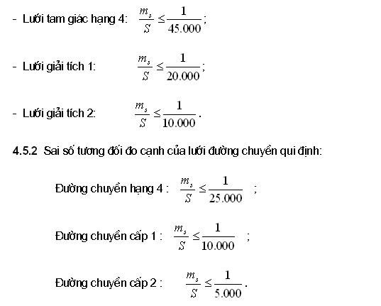 4.5.1 Sai số trung phương tương đối đo cạnh gốc của các lưới tam giác, đa giác và giao hội qui định như sau: