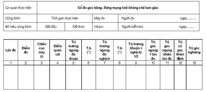 MẪU SỔ ĐO BẰNG, ĐỨNG MẠNG LƯỚI KHỐNG CHẾ TAM GIÁC