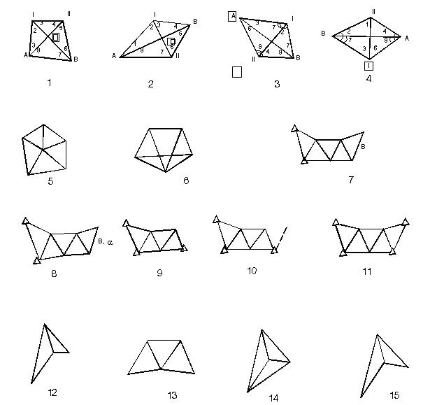 4.6.1 Lưới tam giác hạng 4, giải tích 1, giải tích 2 bố trí thuận lợi ở các dạng sau: