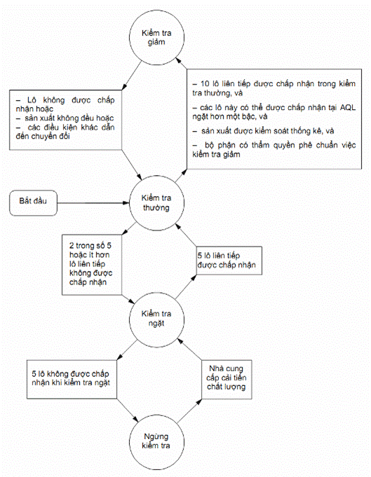 – kiểm tra thường, kiểm tra ngặt hoặc kiểm tra giảm. Tiêu chuẩn có mười bốn phụ lục kèm theo.