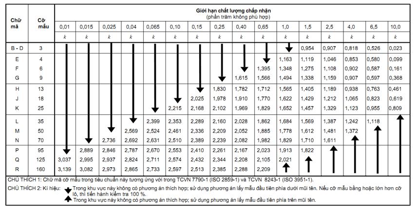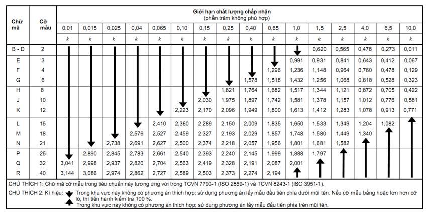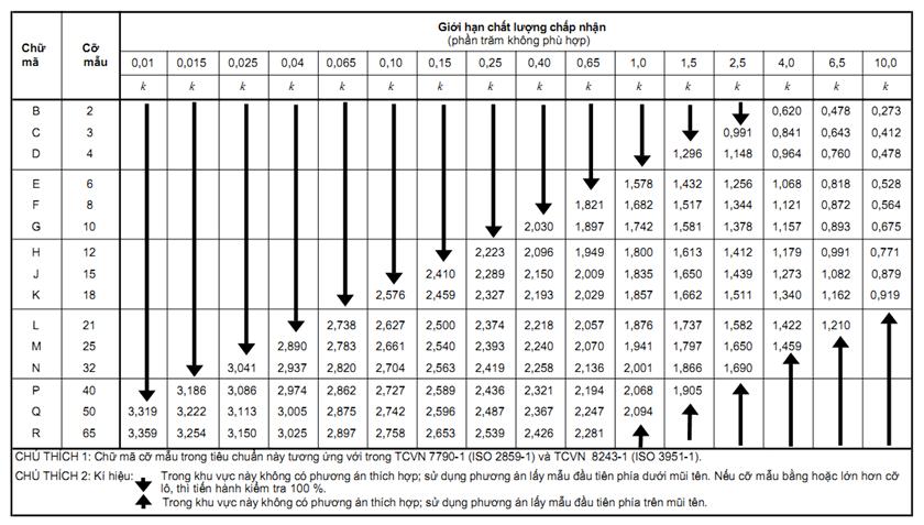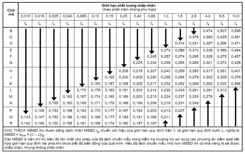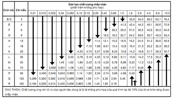 M.6. Rủi ro của nhà sản xuất trong bảng cũng áp dụng gần đúng cho trường hợp hai giới hạn quy định và/hoặc nhiều đặc trưng chất lượng.