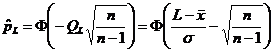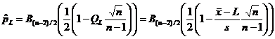 L.4. Đối với phương pháp “σ” đơn biến có một giới hạn quy định, chất lượng ứng với rủi ro của người tiêu dùng được cho bởi công thức