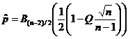 trong đó là phần p* của phân bố beta đối xứng với cả hai tham số bằng (n – 2)/2.