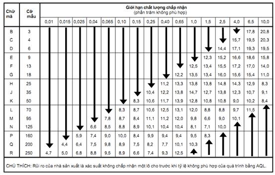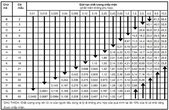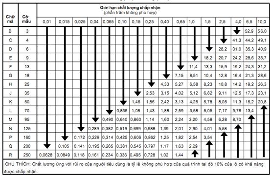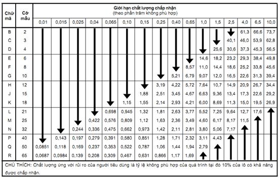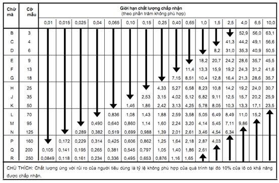 QUY TRÌNH LẤY MẪU ĐỂ KIỂM TRA ĐỊNH LƯỢNG – PHẦN 2: QUY ĐỊNH CHUNG ĐỐI VỚI PHƯƠNG ÁN LẤY MẪU MỘT LẦN XÁC ĐỊNH THEO GIỚI HẠN CHẤT LƯỢNG CHẤP NHẬN (AQL) ĐỂ KIỂM TRA TỪNG LÔ CÓ CÁC ĐẶC TRƯNG CHẤT LƯỢNG ĐỘC LẬP