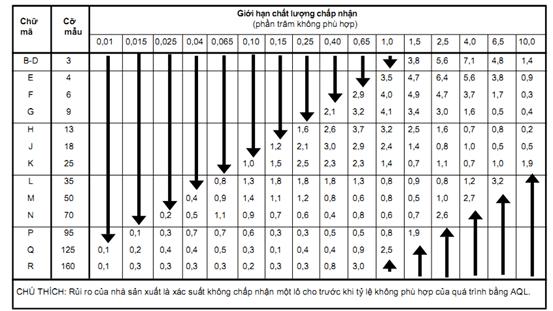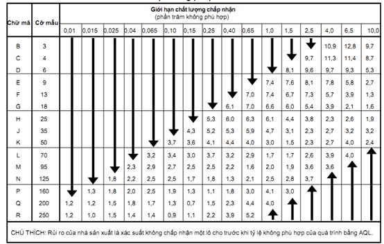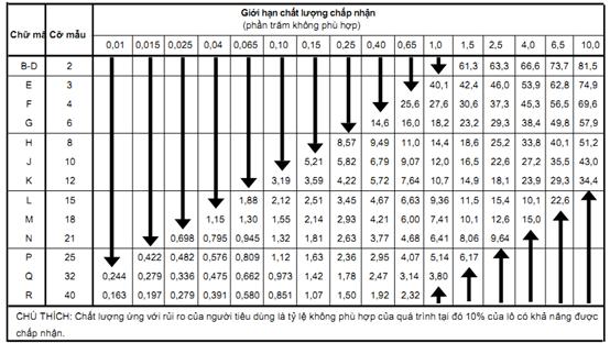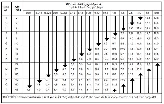 p là AQL biểu thị bằng tỷ lệ không phù hợp;