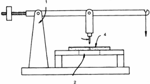 CHÚ DẪN: 1) Thiết bị thử 2) Giá đỡ mẫu 3) Đinh thử 4) Mẫu thử |