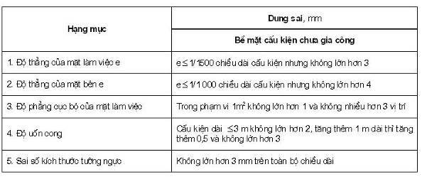 5.1.3 Dung sai chiều dài, chiều rộng cho phép khi cắt phôi quy định tại điều A.3 Phụ lục A