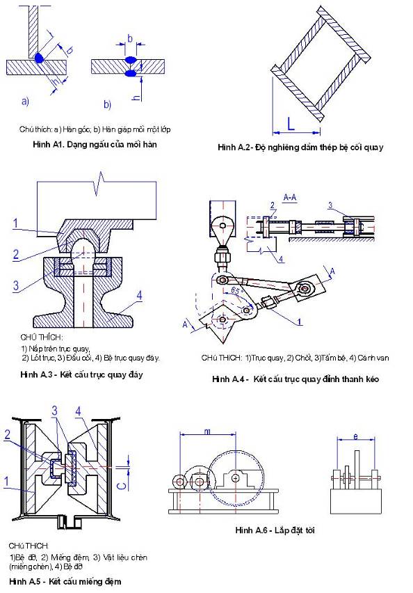 5.3.4 Không được dùng hàn vá sửa chữa các chi tiết được chế tạo từ phôi rèn để treo tải trọng, treo cửa van như móc, vòng, quai nâng tải, bộ phận chịu lực của móc nâng.