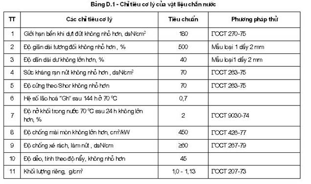 CHỈ TIÊU CƠ LÝ CỦA VẬT LIỆU CHẮN NƯỚC