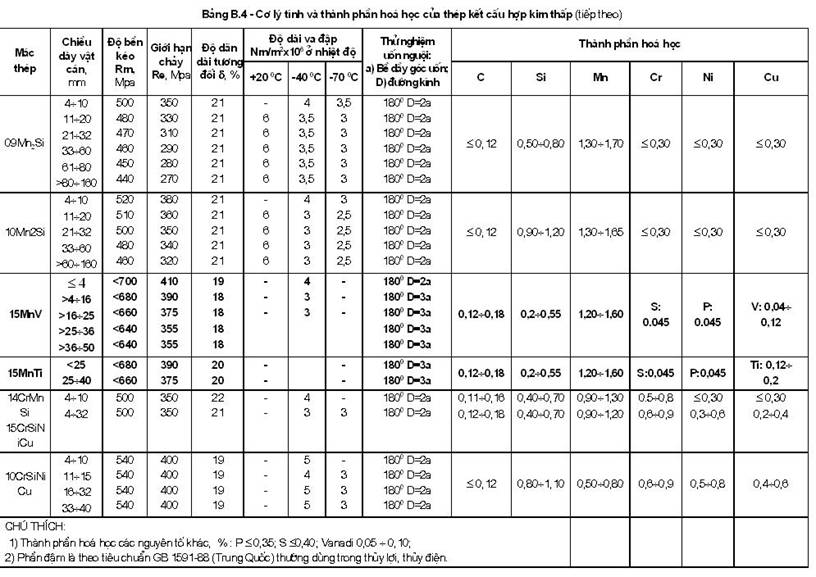 1.2 Tiêu chuẩn này áp dụng cho các kết cấu liên kết bằng hàn, bu lông và đinh tán, được chế tạo từ thép các bon và thép hợp kim thấp thường được sử dụng để chế tạo cửa van, phải sửa chữa và các kết cấu cơ khí thuỷ công.
