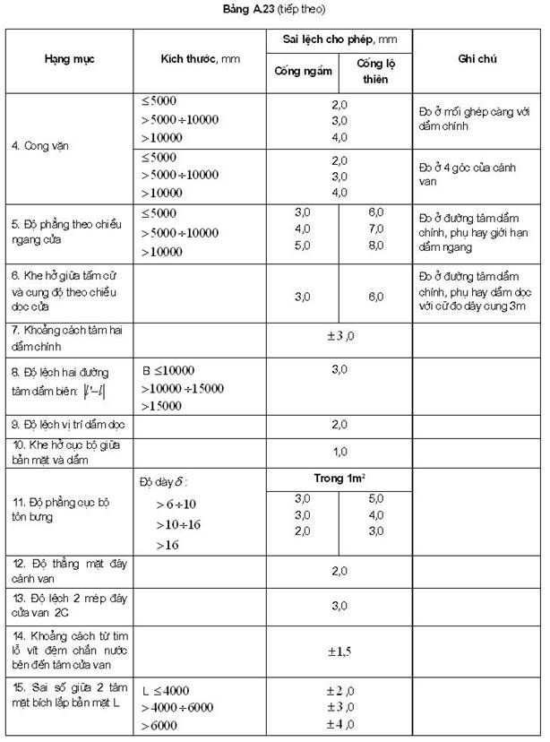 CÔNG TRÌNH THỦY LỢI – YÊU CẦU KỸ THUẬT TRONG CHẾ TẠO VÀ LẮP RÁP THIẾT BỊ CƠ KHÍ, KẾT CẤU THÉP