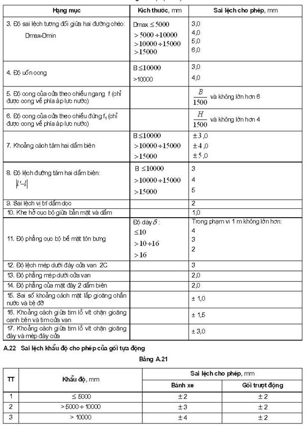 Nội dung toàn văn Tiêu chuẩn Việt Nam TCVN 8298:2009 về công trình thủy lợi – yêu cầu kỹ thuật trong chế tạo và lắp ráp thiết bị cơ khí, kết cấu thép