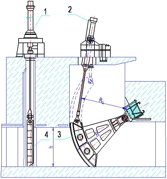 b) Cửa van cung: Xác định vị trí treo xi lanh và phương pháp treo để mô men đóng mở hợp lý nhất, nhỏ nhất có thể và chiều dài làm việc của xi lanh bảo đảm an toàn cho phép.