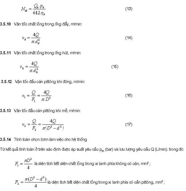 3.2.1 Vật liệu chế tạo các loại xi lanh, bơm, đường ống áp lực do tư vấn thiết kế cơ khí quy định. Khi sử dụng cần lưu ý tới môi trường nơi đặt thiết bị để lựa chọn cho phù hợp.