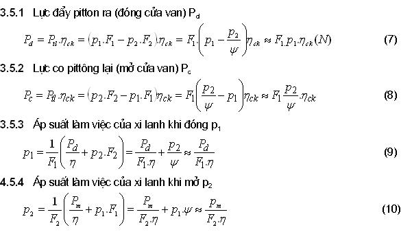 3.5 Lực đóng mở của xi lanh thuỷ lực