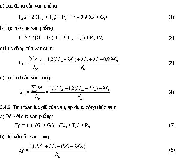 3.4.1 Tính toán lực đóng mở cửa van, áp dụng công thức sau: