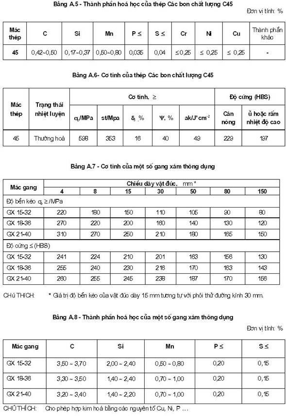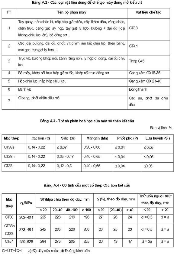 5.8 Vật liệu chế tạo các bộ phận máy tham khảo Phụ lục A.