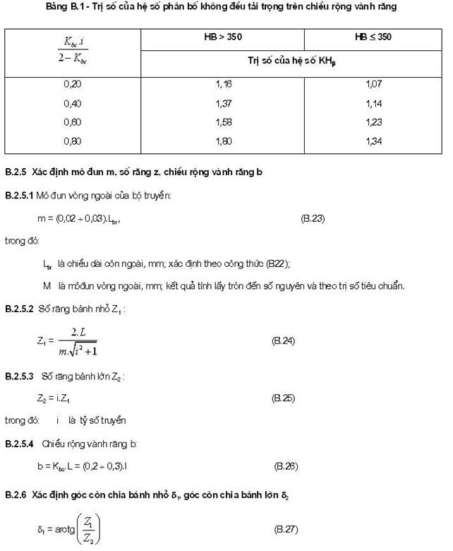B.3.3.3.2 Xác định lực tác dụng lên trục trong bộ truyền bánh răng côn theo phương pháp sau đây: