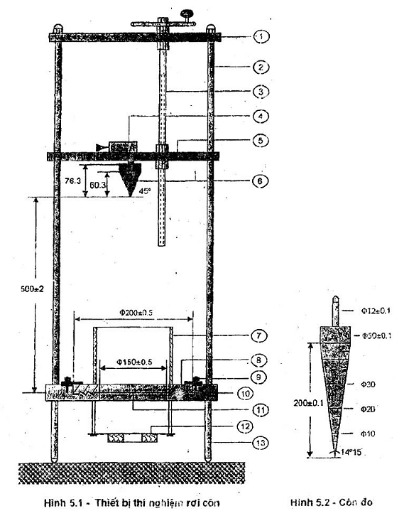 – Độ cao rơi côn tiêu chuẩn là 500 mm ± 2 mm.