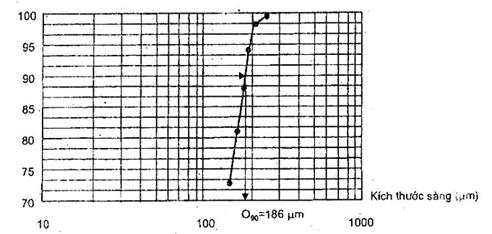 Kết quả : Kích thước lỗ lọc O90 của vải địa kỹ thuật : O90 = d90 = 186