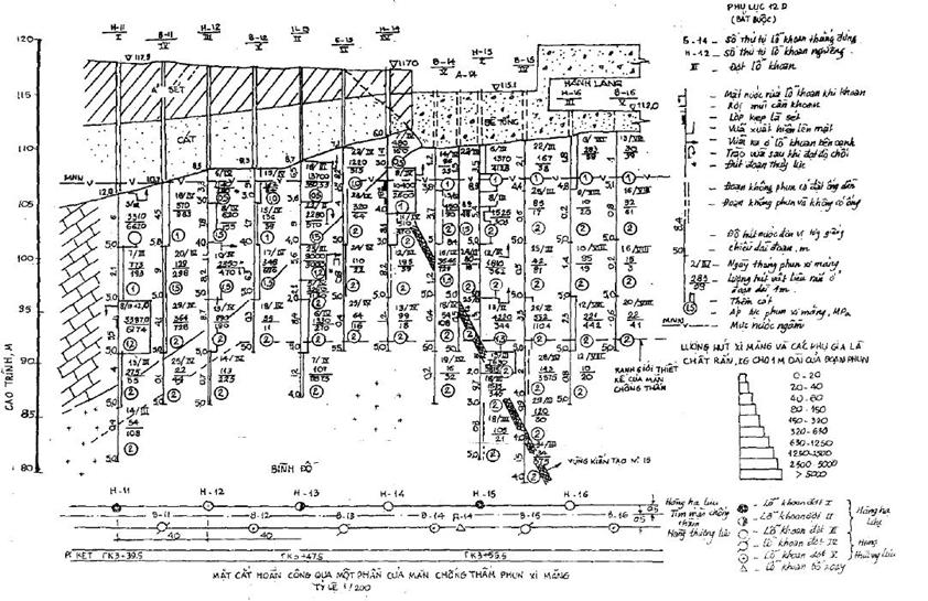 – Các đoạn phải được ghi theo trình tự phụt. Phải ghi rõ loại và mác xi măng, các vật liệu trộn.
