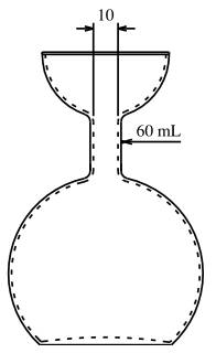 4.6 Bình đong: Làm bằng thuỷ tinh, có vạch dấu tại vị trí 60 mL dùng để xác định thể tích mẫu chảy qua lỗ tròn ở đáy nhớt kế (xem Hình 2).
