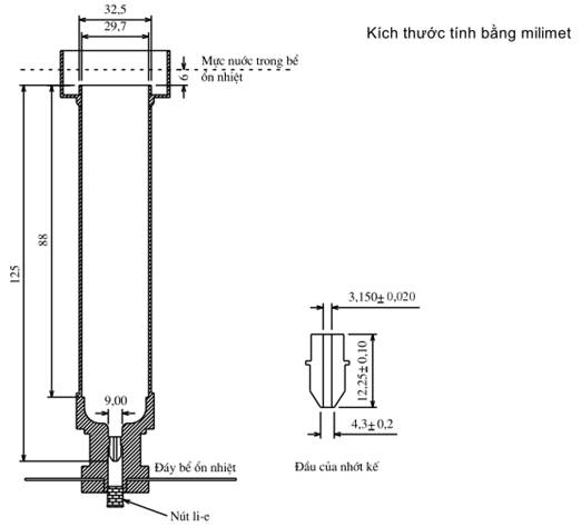 –  Nhiệt kế ASTM loại 17C hoặc 17F phù hợp với tiêu chuẩn ASTM E1 (nhiệt kế thuỷ ngân có phạm vi đo từ 19 oC đến 27 oC, vạch chia 0,1 oC) khi thử nghiệm ở 25 oC.