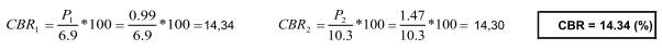 CBR1    là giá trị CBR tính với chiều sâu xuyên 2,54 mm (0,1 in), %;