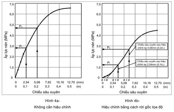 P2         là áp lực nén ứng với chiều sâu xuyên 5,08 mm (0,2 in), MPa (sau khi hiệu chỉnh);