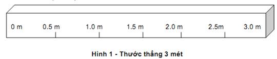 3.1. Thước thẳng: thường được chế tạo bằng kim loại không rỉ, dài 3,0 m. Thước phải thẳng, nhẹ, đủ cứng không bị biến dạng trong quá trình thử nghiệm và có đánh dấu tại các điểm đo cách nhau 50 cm tính từ đầu thước (Hình 1).