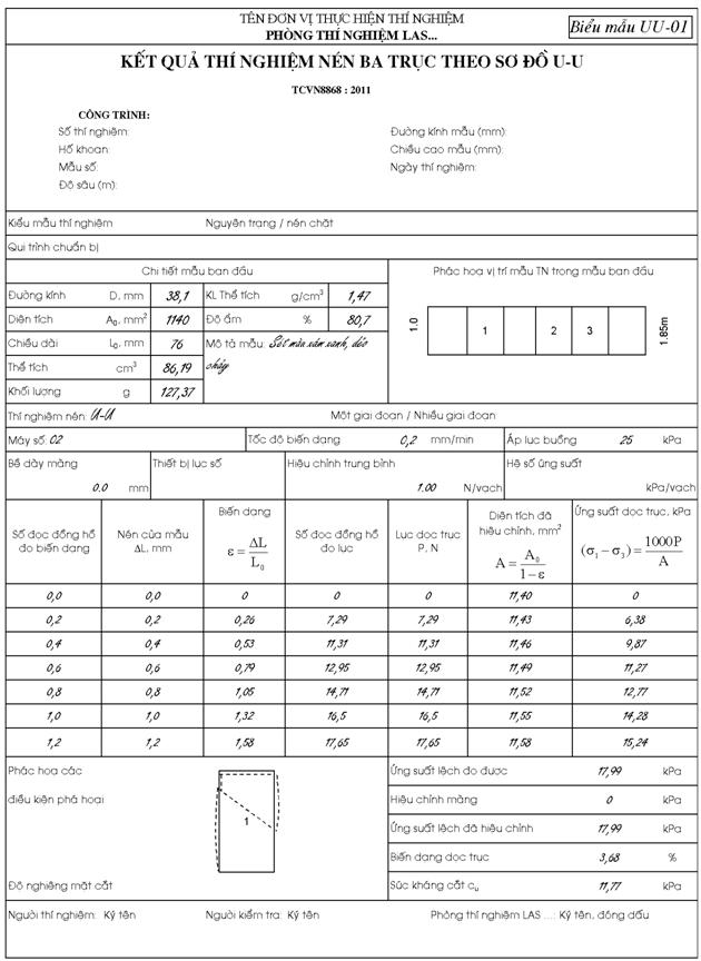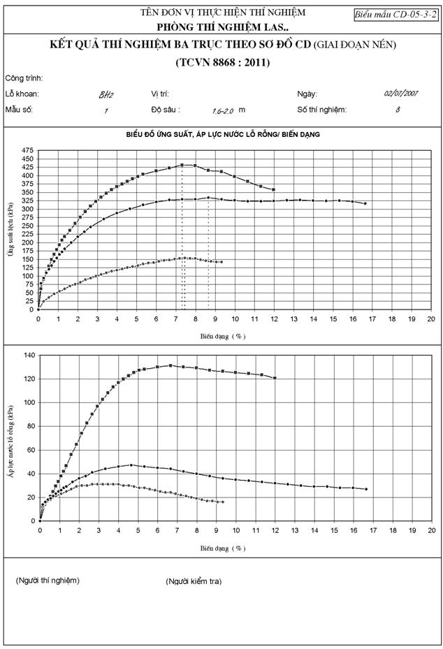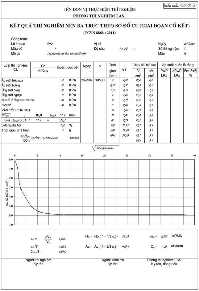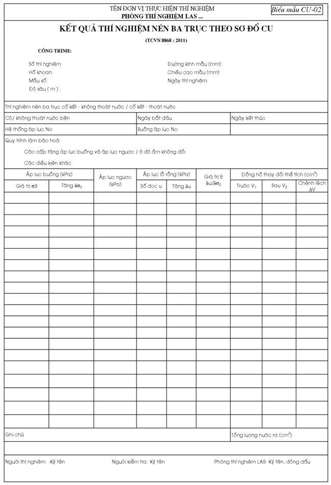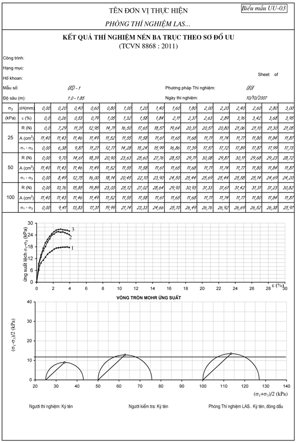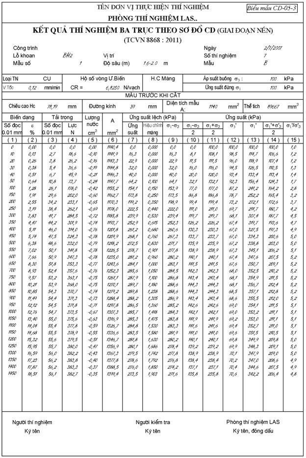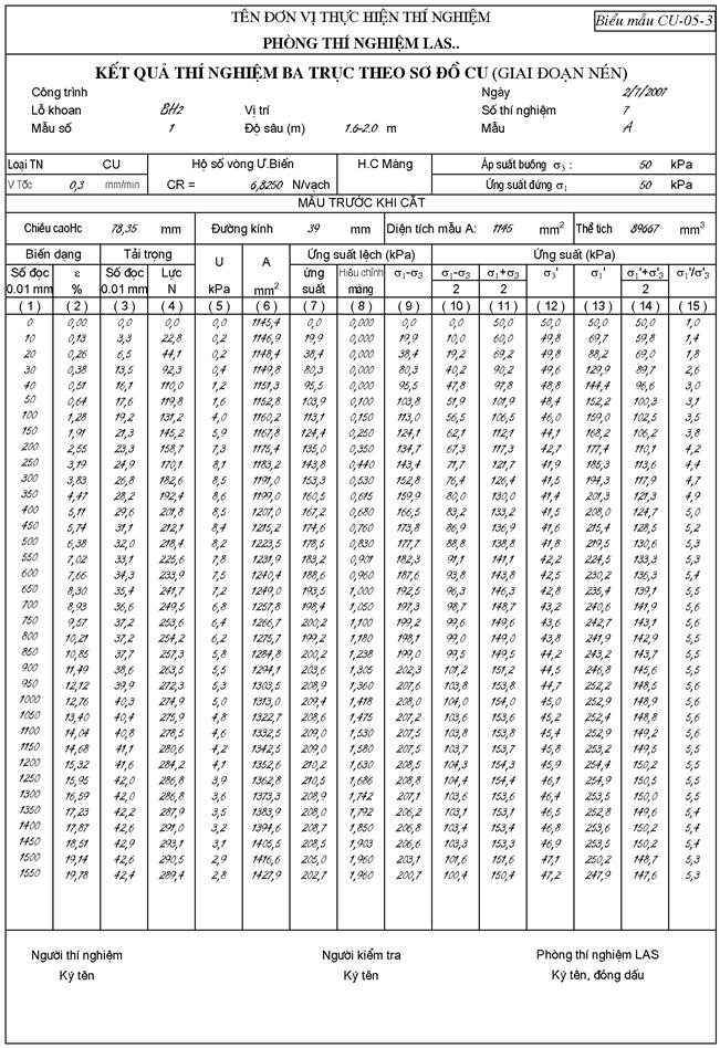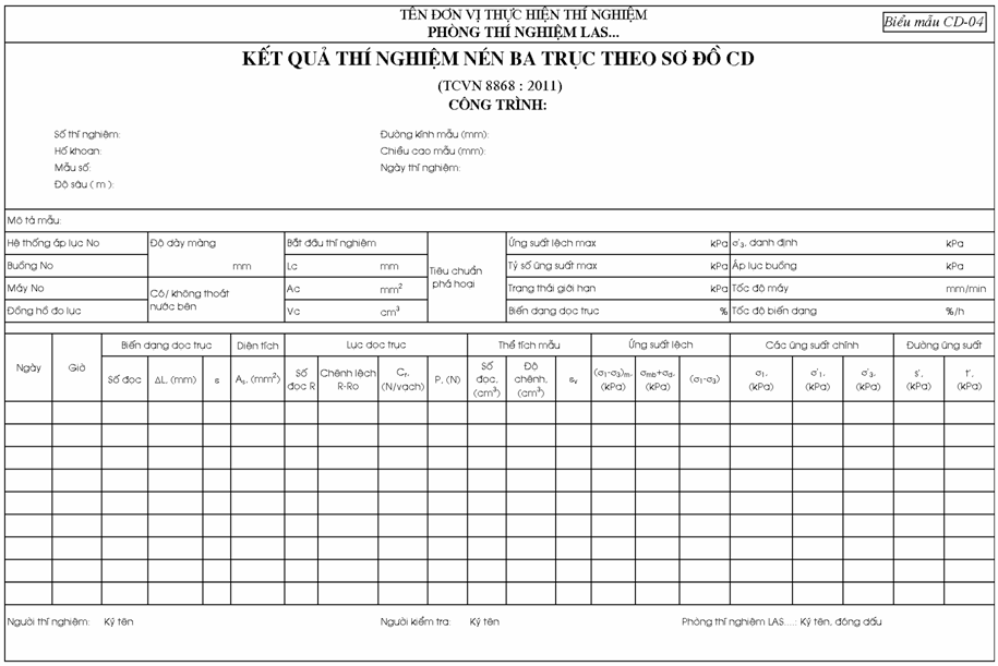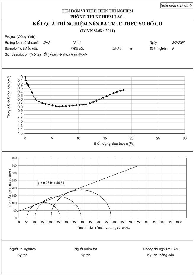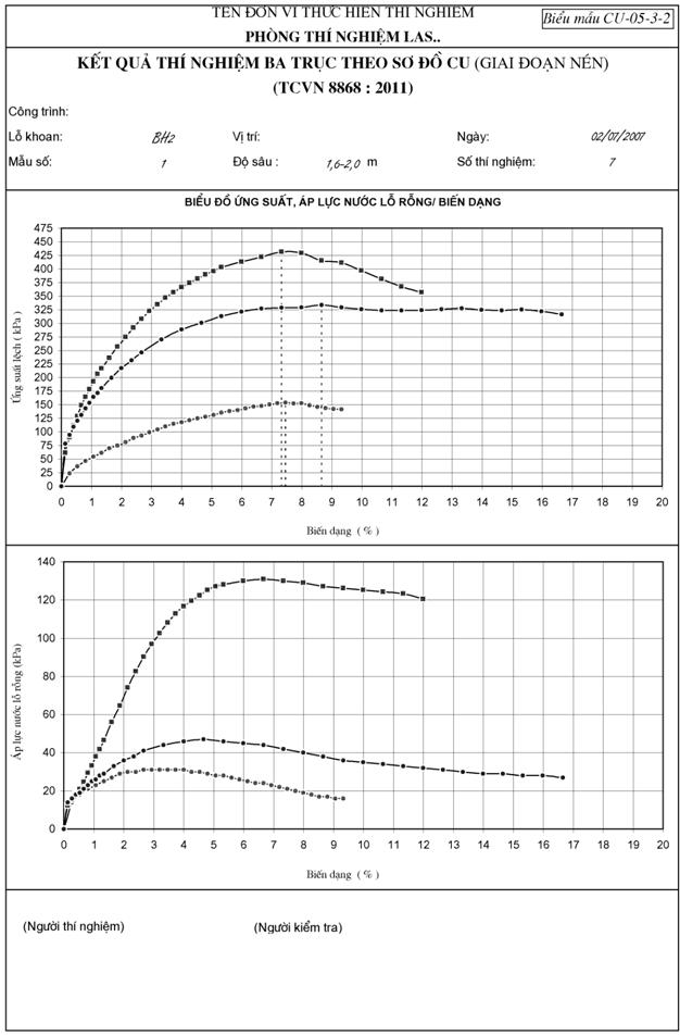 Biểu ghi và báo cáo kết quả thí nghiệm nén ba trục