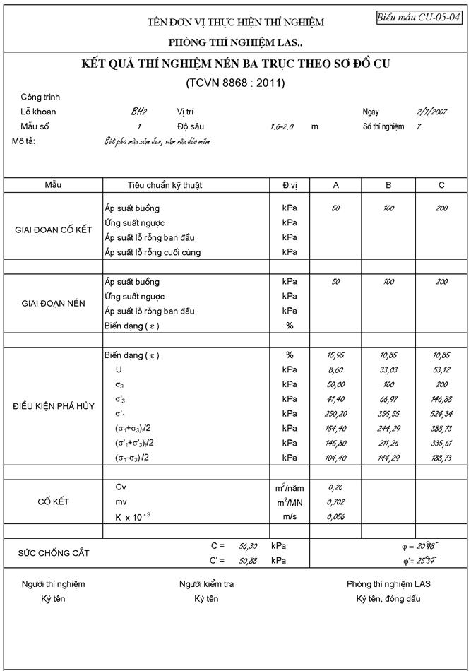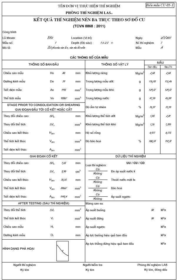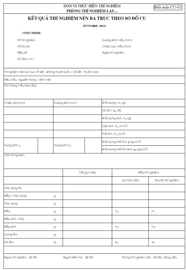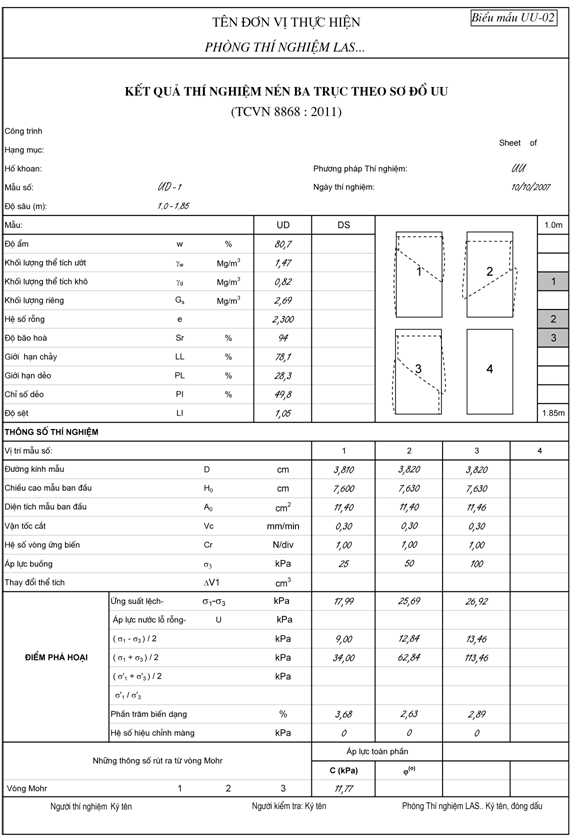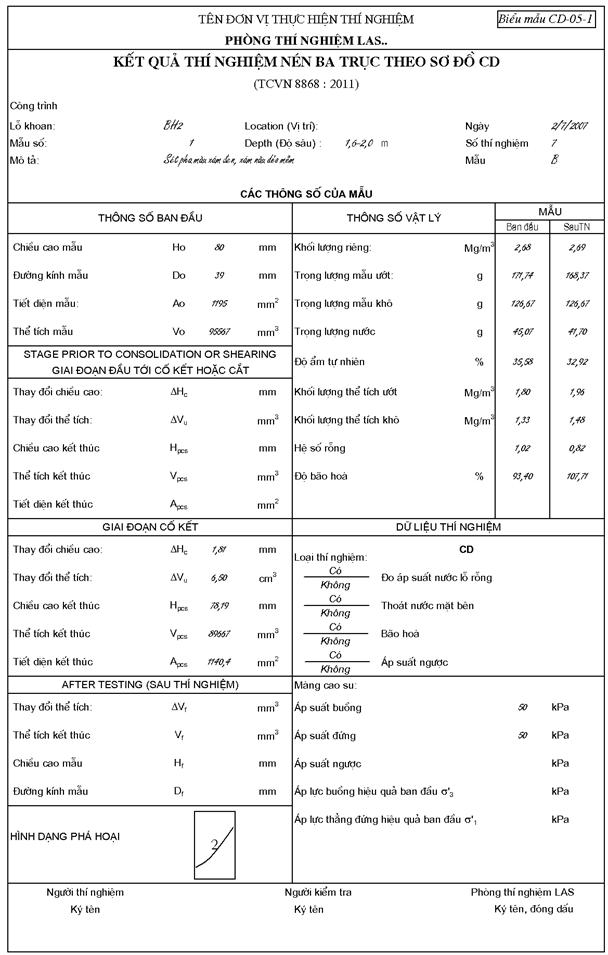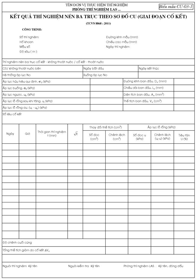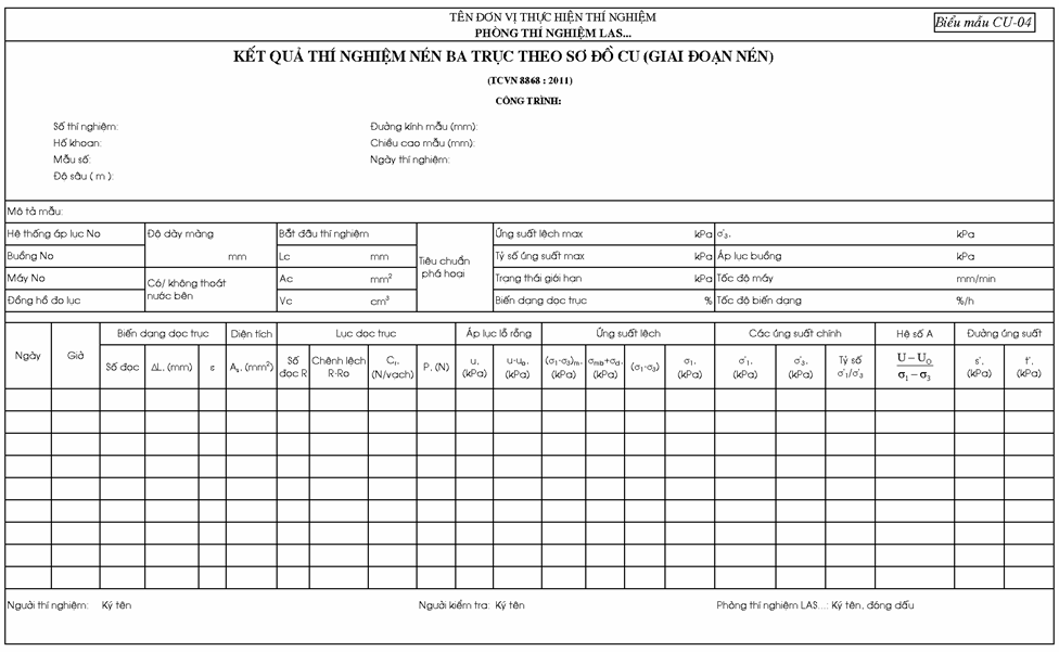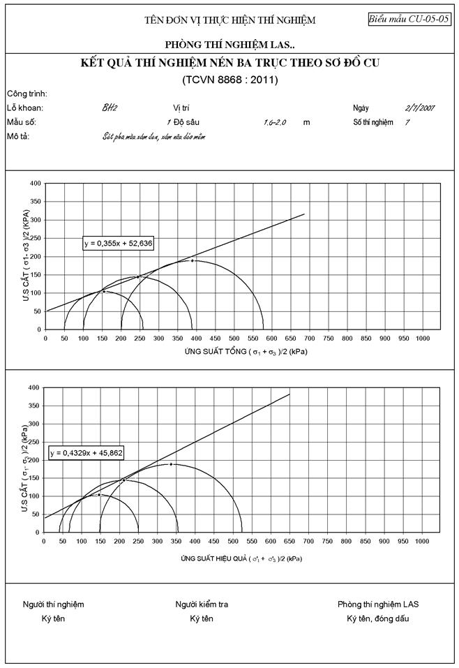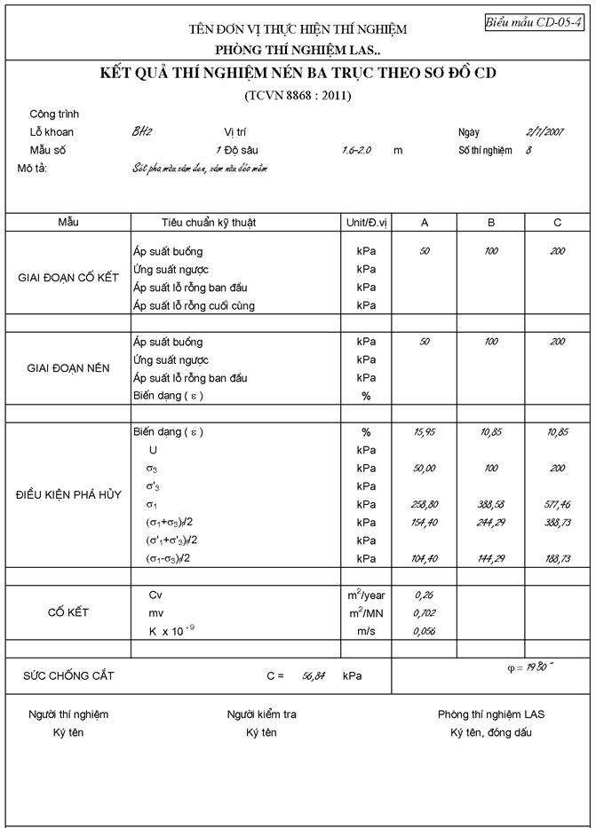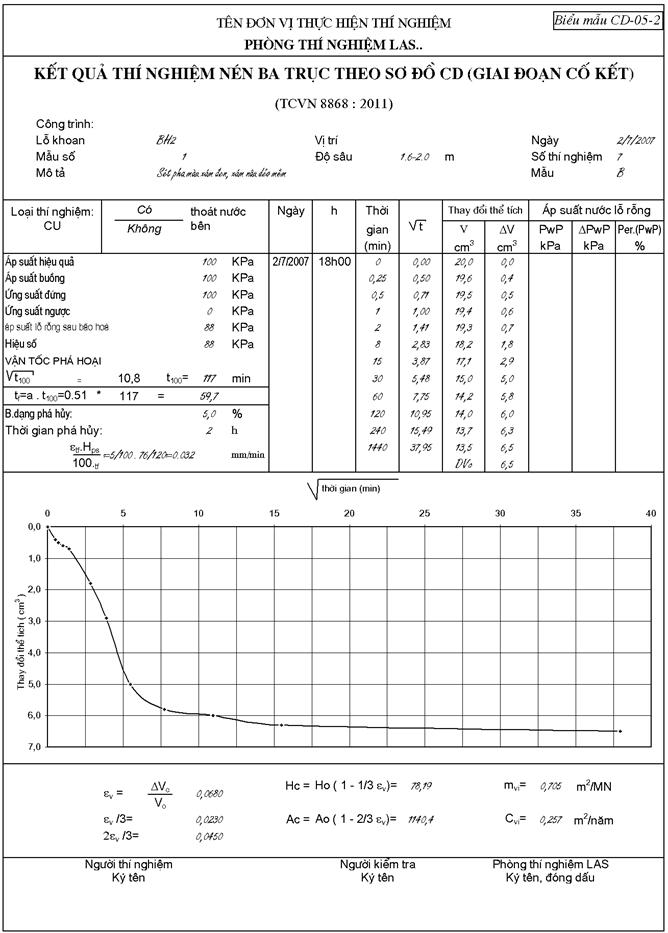 Biểu ghi và báo cáo kết quả thí nghiệm nén ba trục