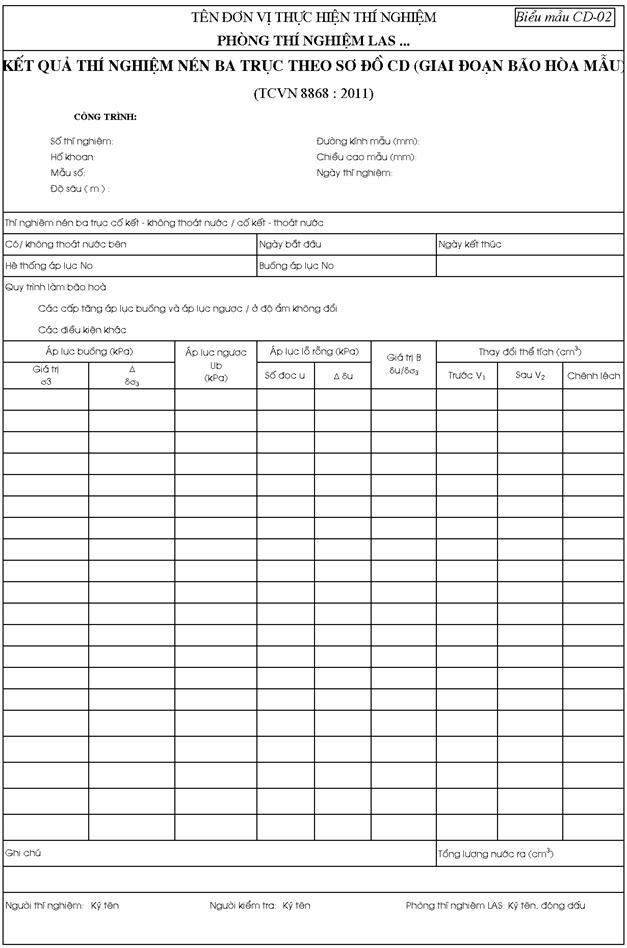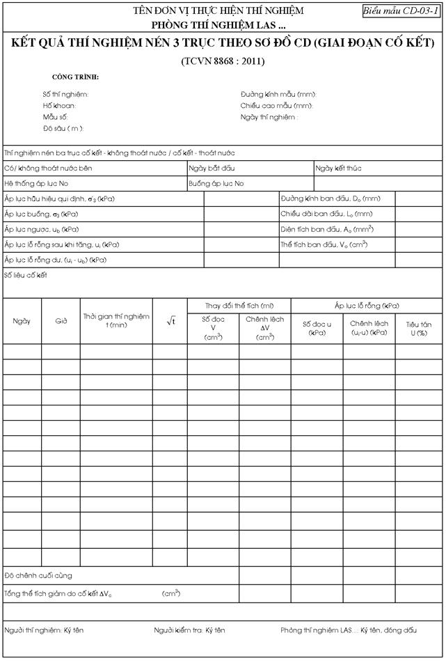 Phụ lục A (Tham khảo) Biểu ghi và báo cáo kết quả thí nghiệm nén ba trục ………………………………………………..