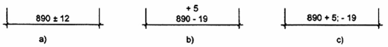 Các thông tin về độ lệch giới hạn thể hiện trên bản vẽ phải phù hợp với ví dụ trong Hình 1a) với trường hợp độ lệch giới hạn đối xứng và phù hợp với Hình 1b) hay Hình 1c) với trường hợp độ lệch giới hạn không đối xứng.