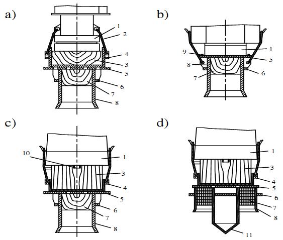 Khi đóng cọc bằng búa hơi đơn động và búa điêzen kiểu ống nên dùng mũ cọc dạng chữ H đúc hoặc hàn có khoang trên và khoang dưới. Khi đóng cọc bằng búa điêzen kiểu cần và búa hơi song động có thể dùng mũ cọc dạng chữ U chỉ có mình khoang dưới (xem Hình D.1).