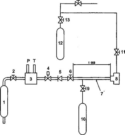 Oxy ở 60 °C được cho tiếp xúc với vật liệu cần thử thông qua một ống nối bằng đồng (7) có đường kính 5 mm và dài 1000 mm, được đóng mỡ bằng một van mở nhanh (4).