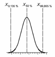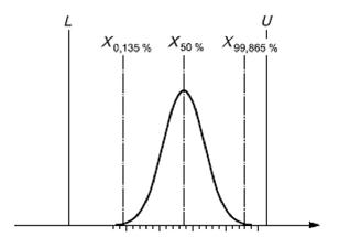 Nếu như vậy, và nếu là phân bố chuẩn, thì có thể mô tả sự phân tán của quá trình thông qua việc sử dụng sáu độ lệch chuẩn được tính toán trên cơ sở phân bố của quá trình. Nếu các quan trắc của quá trình tuân theo phân bố (hình chuông) chuẩn thì (về lý thuyết) sự phân tán này sẽ bao trùm 99,73 % tổng thể. Nếu không phải là phân bố chuẩn thì cần sử dụng công thức khác để ước lượng sự phân tán. Thông tin thêm về phân tích hiệu năng và năng lực quá trình, xem TCVN 9944-4 (ISO/TR 22514-4).