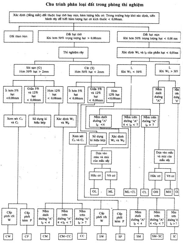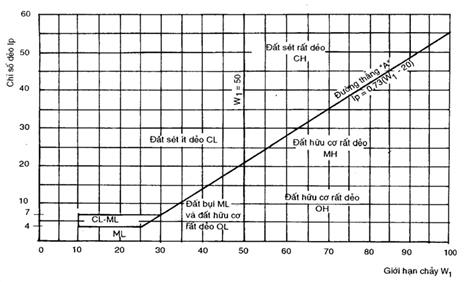 3.3.1. Đất hạt mịn được phân loại dựa trên kết quả thí nghiệm xác định giới hạn chảy (W1) và giới hạn dẻo (Wp); dựa vào biểu đồ dẻo trong hình 3.1, sẽ xác định được loại đất.