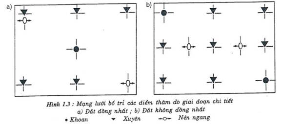 – Mật độ các điểm thăm dò được tăng lên tùy thuộc độ không đồng nhất của đất và mức độ quan trọng của công trình.