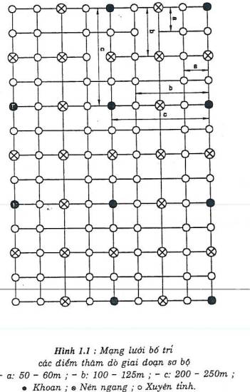 Trên hình 1.3 nêu một ví dụ về bố trí các điểm thăm dò.