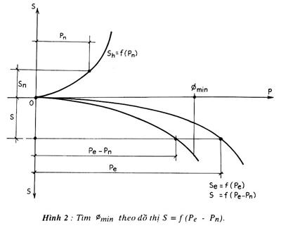 5. Dựa vào biểu đồ thí nghiệm nén cọc(N1); Se = f.(Pe) và nhổ cọc N2;Sn = f.(Pn) để lập biểu đồ “lún -tải trọng” cọc S = f.( Pe -Pn) bằng cách trên trục hoành lấy các giá trị của đồ thị Sn = f.(Pn) trừ đi các giá trị tương ứng của đồ thị Se = f.(Pe) khi có cùng một giá trị trên trục tung (độ lún) (hình 2. Dựa vào đồ thị S = f.( Pe -Pn) xác định sức chịu tải nhỏ nhất của cọc jmin (T).