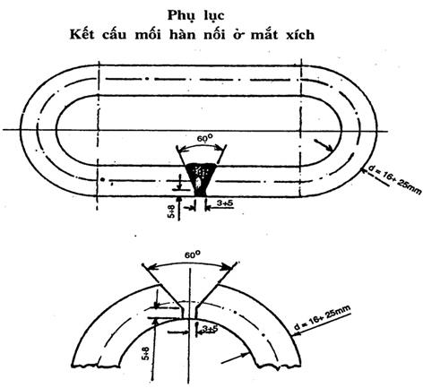 2.3. Vị trí hàn nối mắt xích không được làm giảm đường kính ở mối hàn quá 2mm và tăng lên quá 5mm.