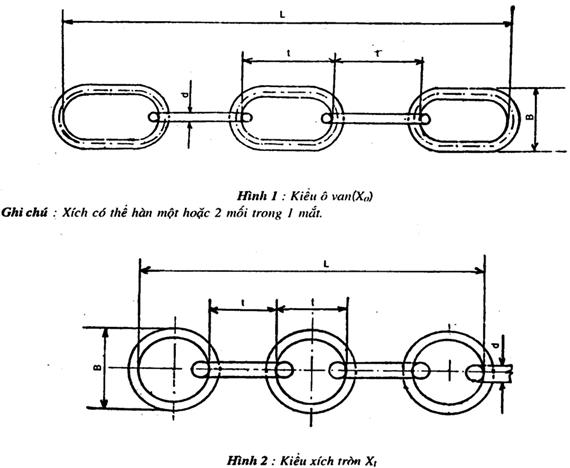 Chú thích: Hình dạng mắt cuối và chiều dài từng dây xích theo thoả thuận của bên đặt hàng và bên chế tạo.