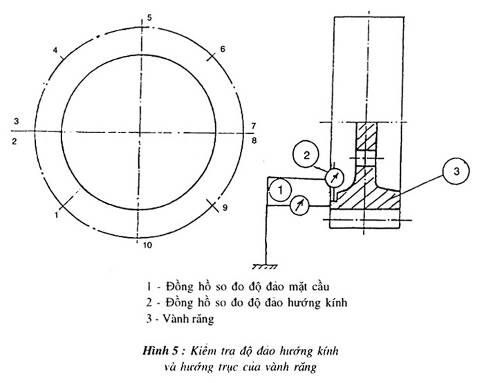 Hình 5 – Kiểm tra độ đảo hướng kính và hướng trục của vành răng