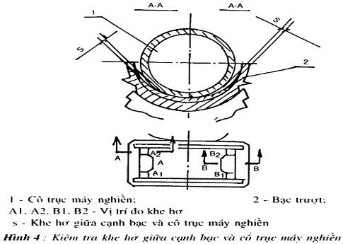 3.2.4. Kiểm tra khe hở giữa cạnh bạc và cổ trục máy nghiền