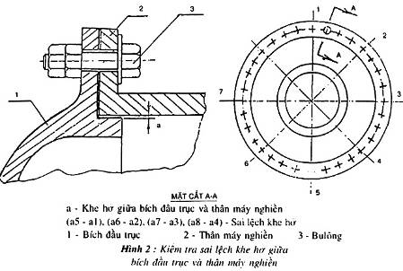 Hình 2 – Kiểm tra sai lệch khe hở giữa bích đầu trục và thân nghiền