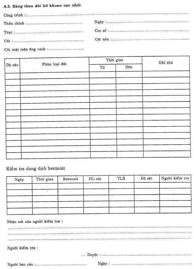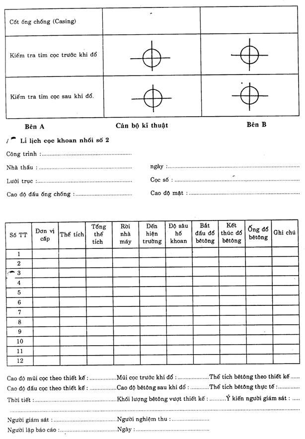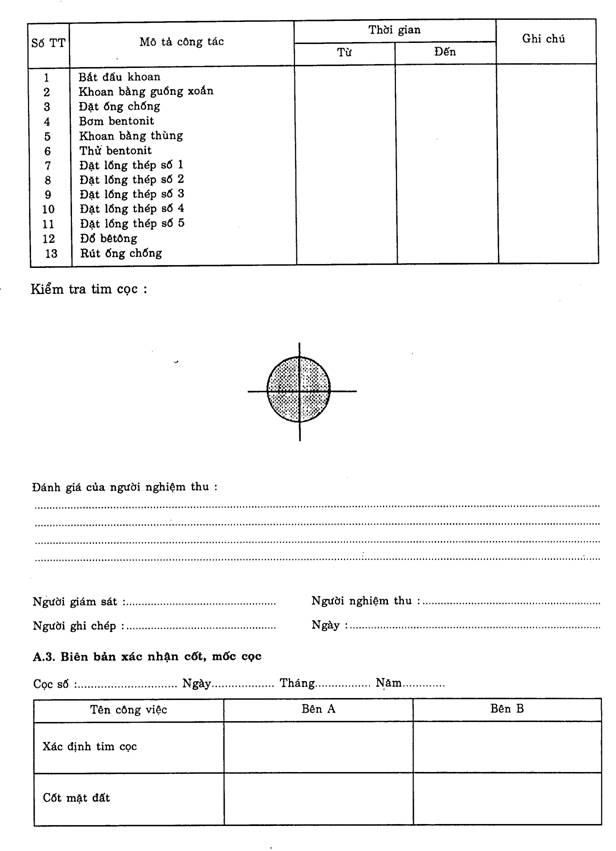 + Ngày và thời gian bắt đầu khoan và bắt đầu đổ bê tông ;