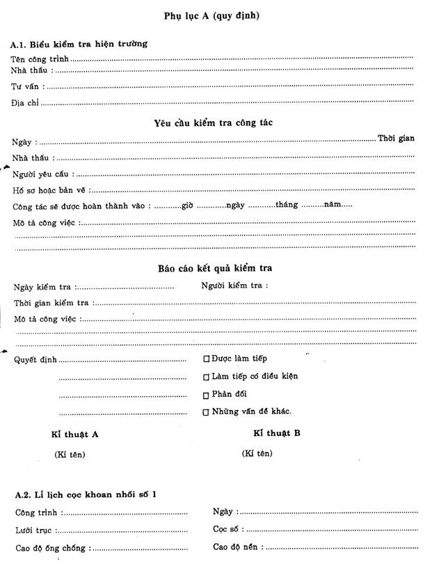 Lí lịch cọc phải được kĩ thuật A-B kí xác nhận ngay trong quá trình thi công và bao gồm các thông tin sau: