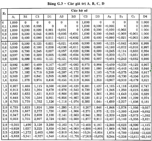 d) Các trường hợp còn lại mc lấy theo nội suy.